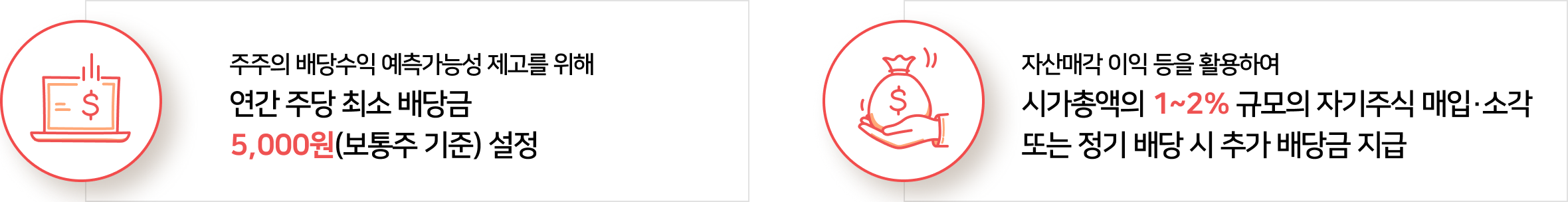 안정적이고 예측 가능한 기본 배당과 자산매각 이익 등을 활용한 점진적 주주환원 확대를 통해 주주가치 극대화 추구